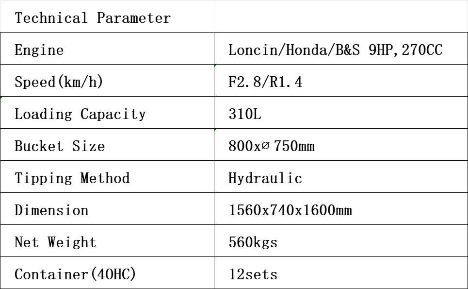 RATED LOAD 310L HYDRAULIC DRIVEN TRACKED MINI DUMPER